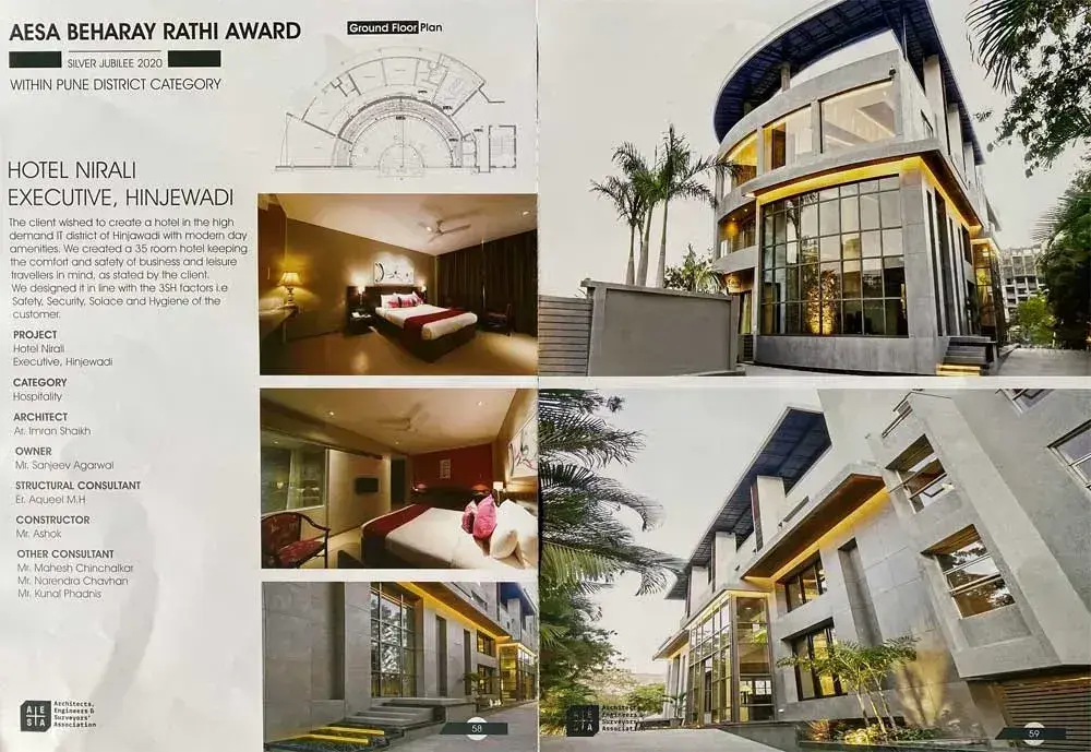 - Our designed hotel, “HOTEL NIRALI EXECUTIVE”, Hinjewadi, Pune, was published in the national level architectural magazine ‘DESIGN VISTA’ in the February edition