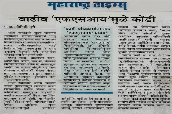 - We were interviewed and published in the newspaper “TIMES OF INDIA”, Pune edition, under the subject of philosophy of architecture on 17th October 2021.